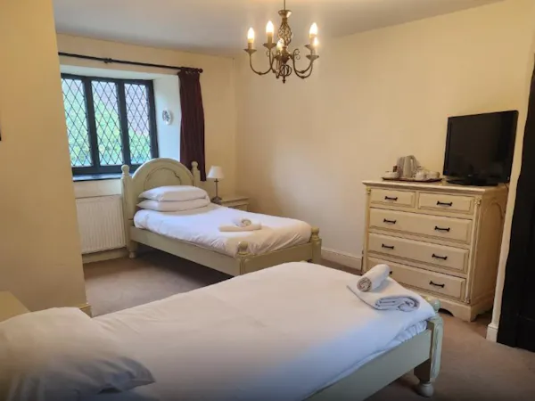 Large en suite room with twin beds, flat-screen TV, free Wi-Fi access and tea and coffee making facilities