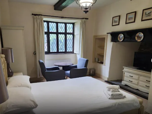 Large en suite room with a king-size bed, flat-screen TV, Wi-Fi access and tea and coffee making facilities.
